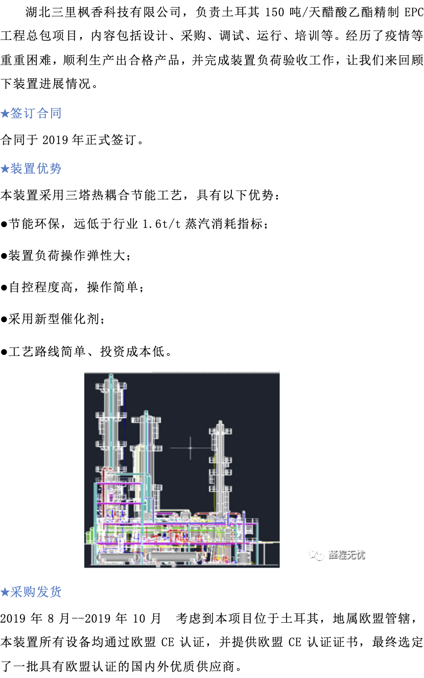 土耳其醋酸乙酯裝置開(kāi)車(chē)成功